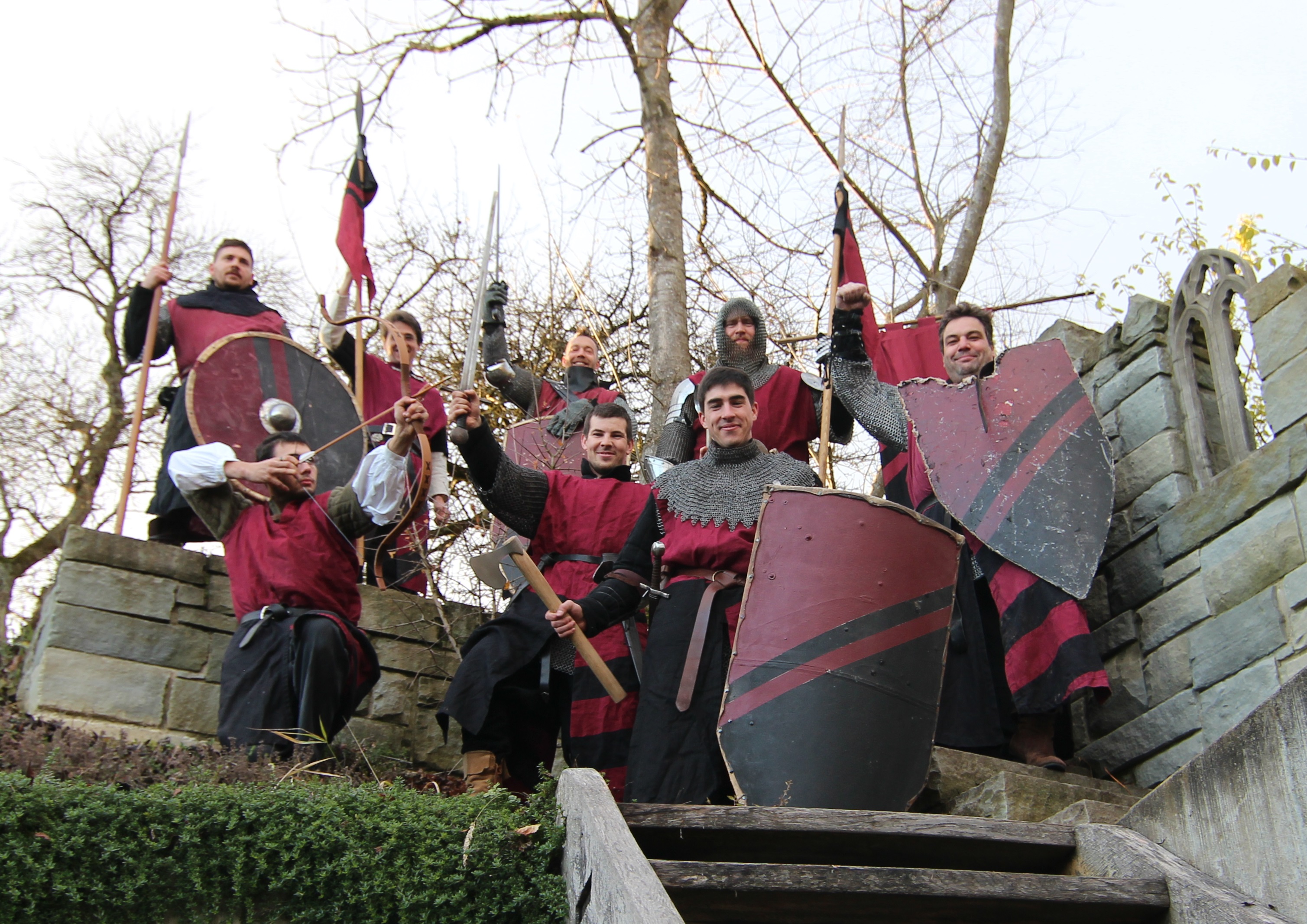 Wir sind eine dem Hochmittelalter verschriebene, kämpfende Bruderschaft. Pauschal stellen wir das Jahr um 1300 n. Chr. dar.