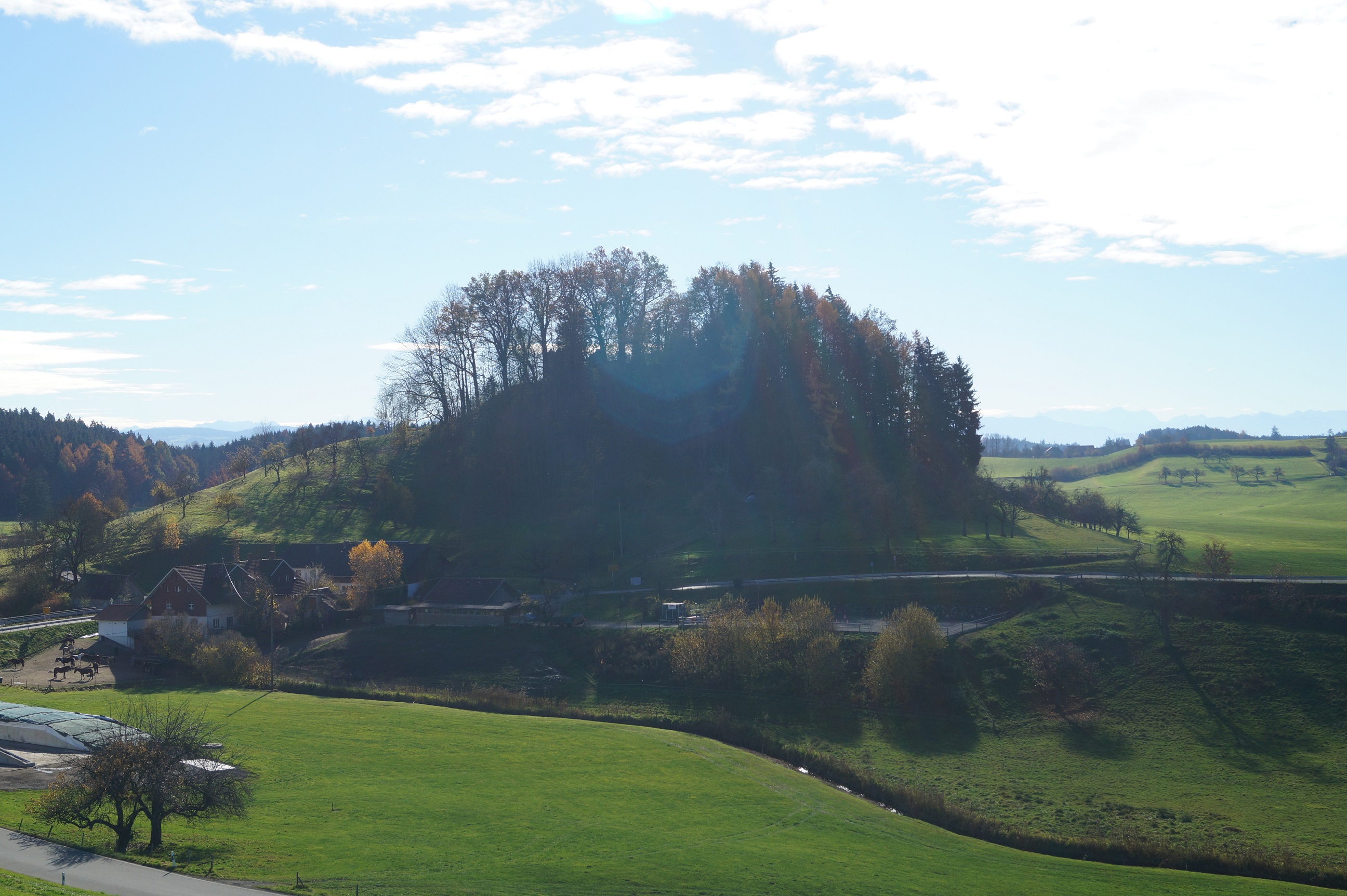 Die Ebersberg liegt auf einem bewaldeten Hügel zwischen Bodnegg und Neukirch in der Ortschaft Ebersberg.